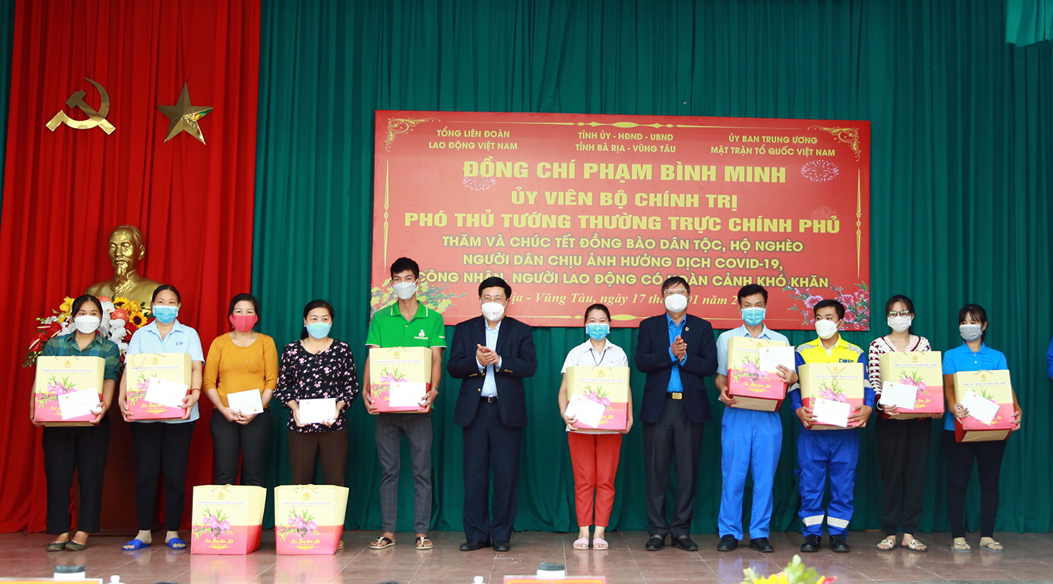Phát biểu với bà con, Phó Thủ tướng Thường trực Phạm Bình Minh nhấn mạnh năm 2021, đại dịch COVID-19 đã ảnh hưởng nặng nề, sâu sắc đến hoạt động sản xuất kinh doanh và đời sống nhân dân cả nước, đặc biệt là công nhân, người lao động.