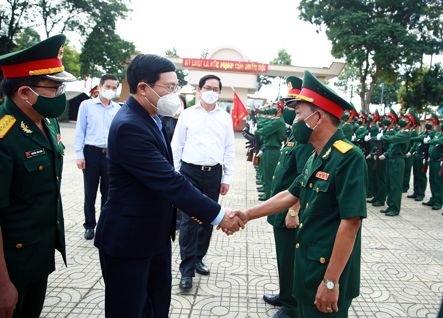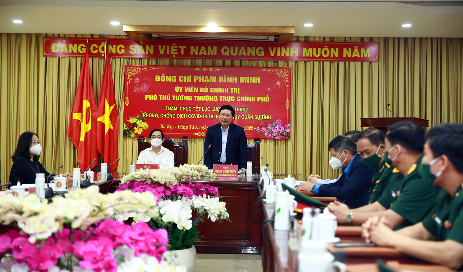 Cùng ngày, Phó Thủ tướng Thường trực Phạm Bình Minh đã đến thăm, chúc Tết cán bộ, chiến sĩ Bộ Chỉ huy quân sự tỉnh Bà Rịa-Vũng Tàu.