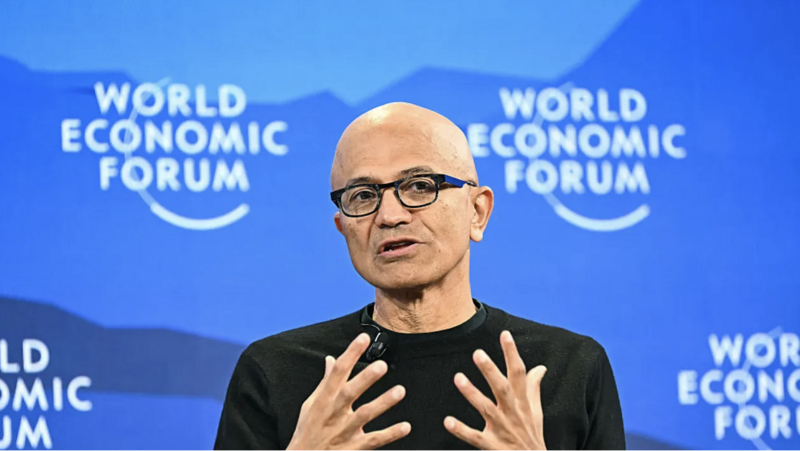 Tổng Giám đốc điều hành Microsoft Satya Nadella phát biểu tại Hội nghị thường niên của Diễn đàn Kinh tế Thế giới (WEF) ở Davos ngày 20/1/2026. Ảnh: AFP