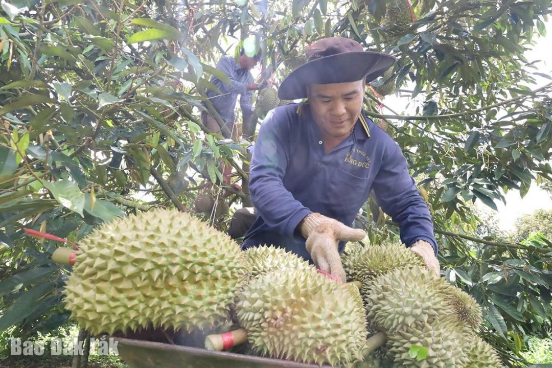 Thu hoạch sầu riêng ở huyện Cư M'gar. Ảnh: Vạn Tiếp |