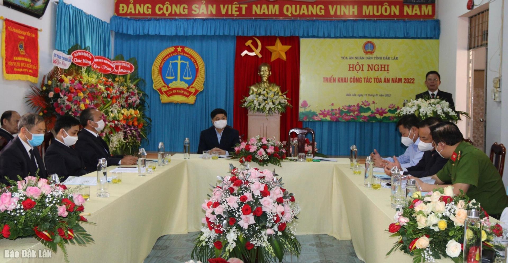 Phát biểu tại hội nghị, đồng chí Phạm Minh Tấn, Phó Bí thư Thường trực Tỉnh ủy biểu dương những thành tích Tòa án hai cấp tỉnh Đắk Lắk đã đạt được trong năm 2021. Phó Bí thư Tỉnh ủy nêu rõ bênh cạnh thành tích đã đạt được, công tác của Tòa án hai cấp trong năm qua vẫn còn tồn tại, như: vẫn còn có án bị hủy, sửa do nguyên nhân chủ quan của thẩm phán; một số sai sót trong quá trình giải quyết vụ án chưa được khắc phục triệt để, việc giải quyết, thu thập, đánh giá chứng cứ chưa đầy đủ, toàn diện; đưa thiếu người tham gia tố tụng; áp dụng pháp luật để giải quyết vụ án chưa chính xác...