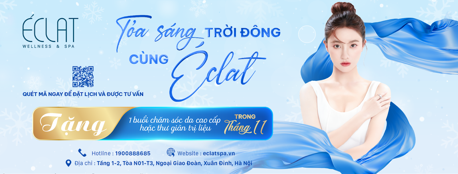 ÉCLAT tin rằng vẻ đẹp thật sự bắt đầu từ sự thấu hiểu và chăm sóc bản thân là khi bạn biết lắng nghe cơ thể mình, khi một liệu trình không chỉ là điều trị, mà là cách yêu thương. ÉCLAT trân trọng gửi tặng 01 buổi trải nghiệm miễn phí chăm sóc da cấp ẩm phục hồi hoặc massage thư giãn trị liệu giúp làn da được cấp ẩm sâu, cơ thể được thả lỏng và năng lượng sống được tái tạo. Đây là món quà nhỏ nhưng chứa đựng trọn vẹn tâm ý, như một lời chúc an lành và dịu dàng ÉCLAT gửi tới những người phụ nữ biết yêu thương chính mình để khi mùa đông gõ cửa, bạn vẫn rạng rỡ, ấm áp và tự tin tỏa sáng theo cách riêng.