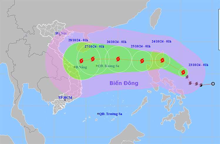 Vị trí và đường đi của bão Trà Mi. Ảnh: NCHMF