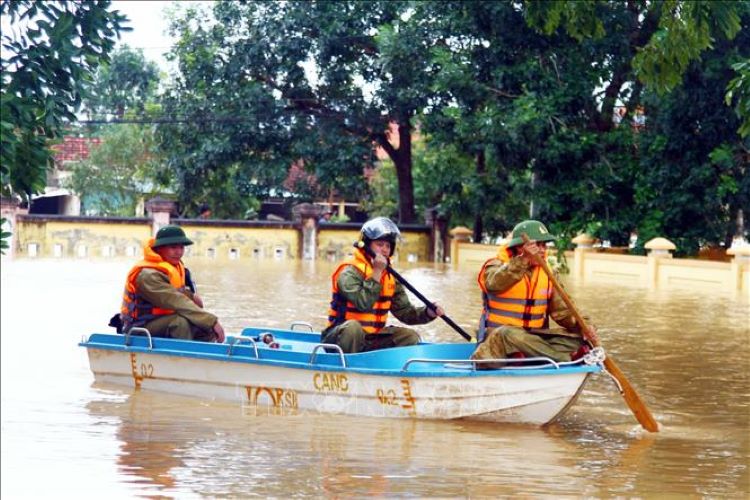 Nước lũ dâng cao khiến hơn 17.000 hộ dân tại Quảng Bình bị ngập lụt. Ảnh: Tá Chuyên - TTXVN