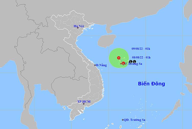 Hồi 1 giờ ngày 8/8, vị trí trung tâm vùng áp thấp ở vào khoảng 15,8-16,8 độ Vĩ Bắc; 111,5-112,5 độ Kinh Đông, trên khu vực quần đảo Hoàng Sa.